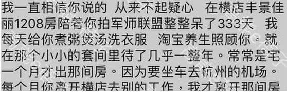 木木发文:吴秀波这可能是我第一次在朋友圈写你,也是最后的一次。声称他不停的拿佛经给自己洗脑,而且是甘愿被你所控制。而且木木表示是吴秀波不让她拍戏的,并且不难发现是吴秀波一直在照顾着她,而且说一辈子都不会分开的话。最重要的一点就是在狗年还生了两个孩子,看来这一个女孩子被骗得够可怜的。