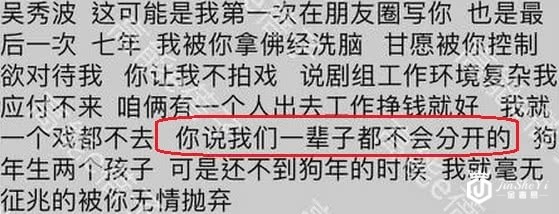 从知情人的朋友圈传来一位叫木木的演员公开揭示了吴秀波渣男的本性。不仅仅是发长文把吴秀波私底下的一面给公开了,而且还把自己与他7年的交往经历也说了出来。声称吴秀波害了自己也害了别人,自己的付出都没有得回报。