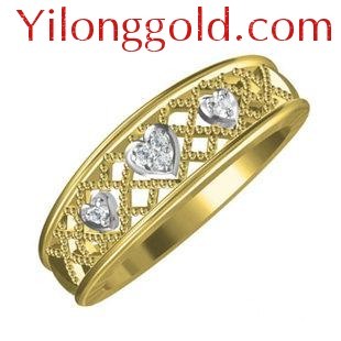 另外是戒指的钻石部分,黄金带钻戒指中的钻石一般都不会太大,主要由于黄金本身是比较柔软的金属,镶嵌大颗钻石容易出现金属扩充,导致钻石脱落的情况,一旦如此将会给消费者带来较大损失,对商家信誉也有一定影响,因此市场中黄金钻石戒指大都不超过20分。
