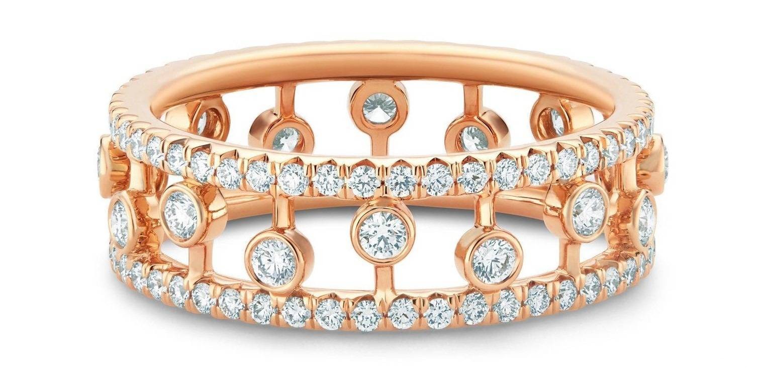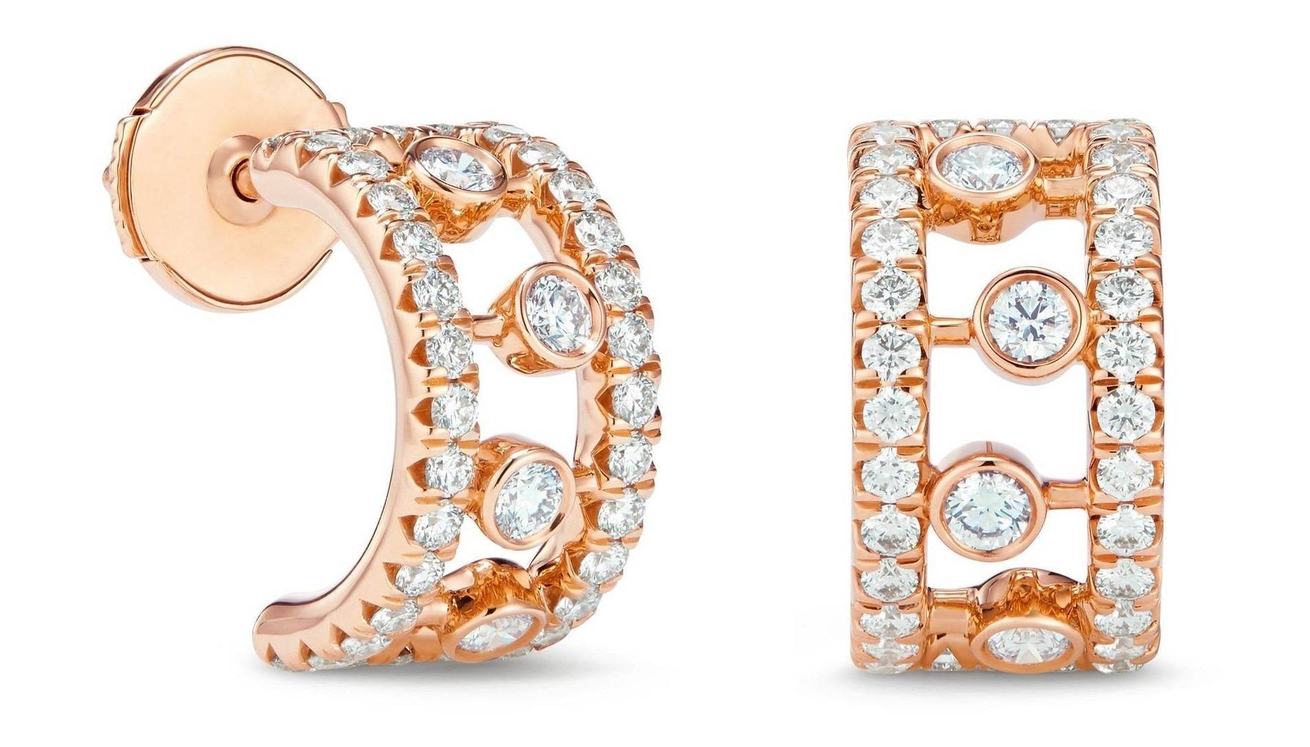 一同出镜的Dewdrop系列玫瑰金钻石戒指定价46500元,其灵感源自古罗马皇帝哈德良为自己心爱之人修建的水上宫殿。戒指上镂空设计的包镶钻石宛若欲滴的露珠般清亮灵动,两条由密镶钻石点缀的平行戒环璀璨夺目,与包镶钻石相互映衬,彰显这款珠宝作品的细腻温柔之美。