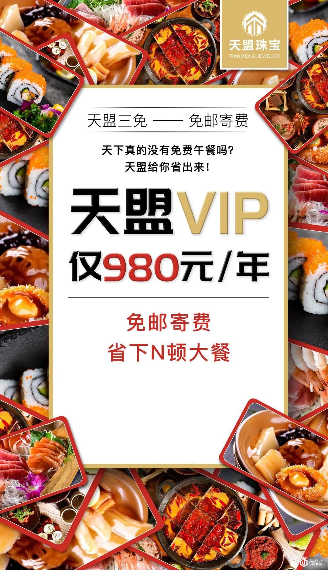 客户仅需花费980元,即可成为尊贵的天盟珠宝VIP,享受免提纯费、免邮寄费、免保价费的“三免政策”,仅需一年,劲省几万块!