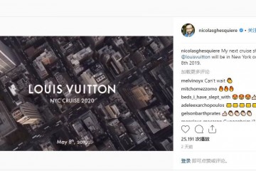 - NicolasGhesquière再度操刀:LV 2020早春女装系列明年5月纽约举行