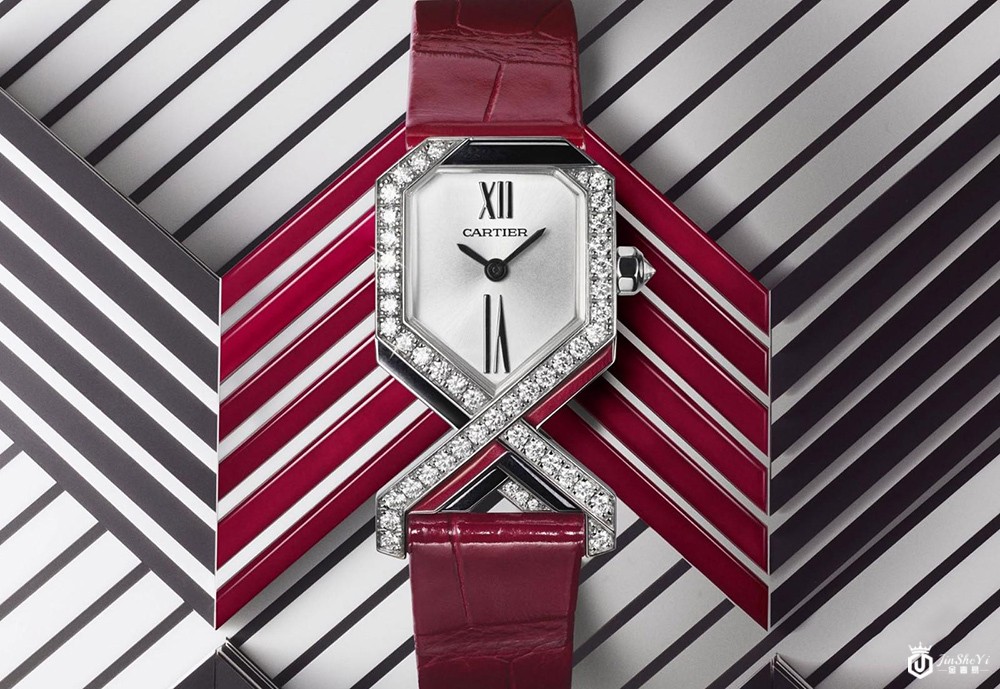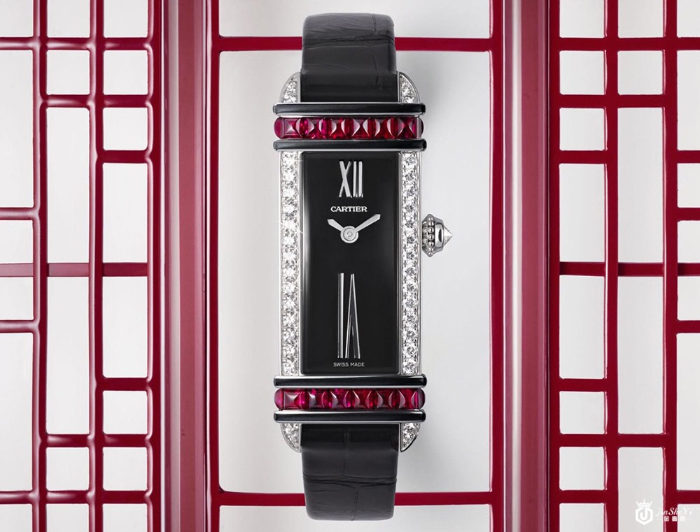 Tank Chinoise Red,该腕表以1921年的坦克腕表为基础,并从中国建筑中汲取灵感,原始的方形结构被拉长和收狭。18K白金表壳镶嵌两条平行的红宝石带,搭配黑漆表盘,内置石英机芯,限量生产100枚。价格预计在60,000欧元左右。