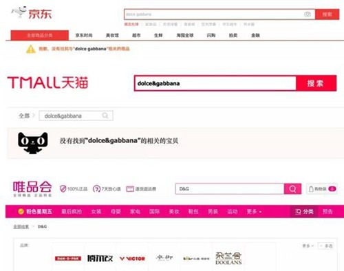 各个电商平台纷纷将将D&G店铺及商品进行关闭下架处理。