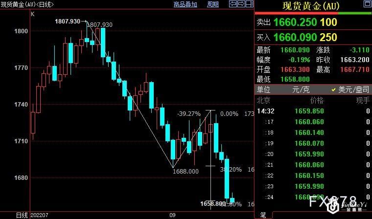nload='javascript:if(this.width>500)this.width=500' align='center' hspace=10 vspace=10 rel='nofollow'/>潜在风险不容忽视 美联储对高通胀反应迟滞,被迫大幅加息后导致美元飙升,引发的冲击已经开始显现。不少经济学家已经开始质疑,经济能否在失业率大幅上升(可能高达7.5%)的情况下度过这一轮通胀。 智库布鲁金斯学会的研究指出,出现近40年未见的高通胀虽然不能完全归咎于政府此前推出的5万亿美元财政刺激,但它绝对是重要推手。为了成功控制本轮通胀,美国失业率增幅可能要远高于预期——最终或损失600万个工作岗位。 美联储主席鲍威尔已经暗示,加息可能会持续更长的时间,并造成经济痛苦。但鲍威尔承认,下定这种决心行动并不容易。美国经济增速和蓬勃发展的就业市场将付出巨大牺牲。 为了让实际通胀与未来预期趋于一致,美联储别无选择,哪怕不惜抑制经济增长,这个过程会导致更多美国人失业。但即便存在避险环境,加息会提升非孳息资产黄金的持有成本,金价阻力最小路径依然是下行。 现货黄金下看1643美元 日线上看,金价自1735美元开启下行3浪,跌破61.8%目标位1661美元,后市料下探76.4%目标位1643美元。3浪是自1808美元开启下行III浪的子浪。III浪是自2070美元开启的下行©浪的子浪。