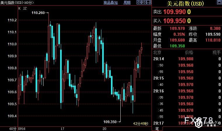 nload='javascript:if(this.width>500)this.width=500' align='center' hspace=10 vspace=10 rel='nofollow'/>北京时间20:16,现货黄金下跌0.43%至1668.23美元/盎司;美元指数上涨0.34%至109.9768。
