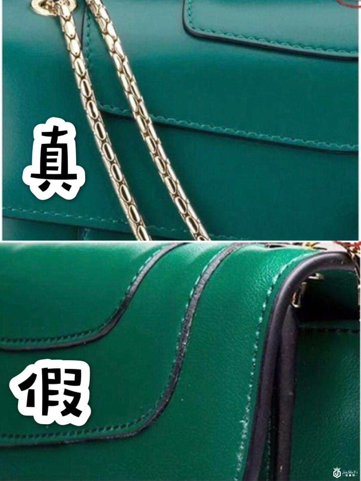 4.烫金logo:正品logo非常清晰,字母间保持一直,还有正品皮标做工是凹凸出来的。