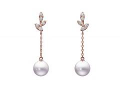 设计师巧妙地将水滴形设计应用到扣饰上,展示了露水充足且随时可以滴落时的摇摆瞬间。日本的Akoya珍珠光泽明亮,犹如晨光中闪耀的露珠,以优雅醉人的姿势蜷缩着,散发出动人的光彩。