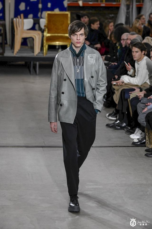 新华社照片,巴黎,2019年1月20日 (国际)(2)巴黎男装周——爱马仕发布秋冬男装 1月19日,在法国巴黎男装周上,模特展示爱马仕品牌2019/20秋冬男装。 新华社发(皮耶罗·比亚西翁摄)
