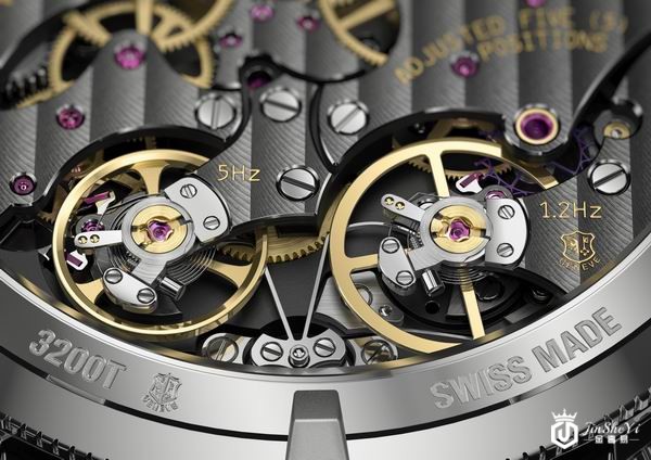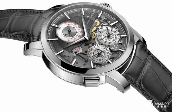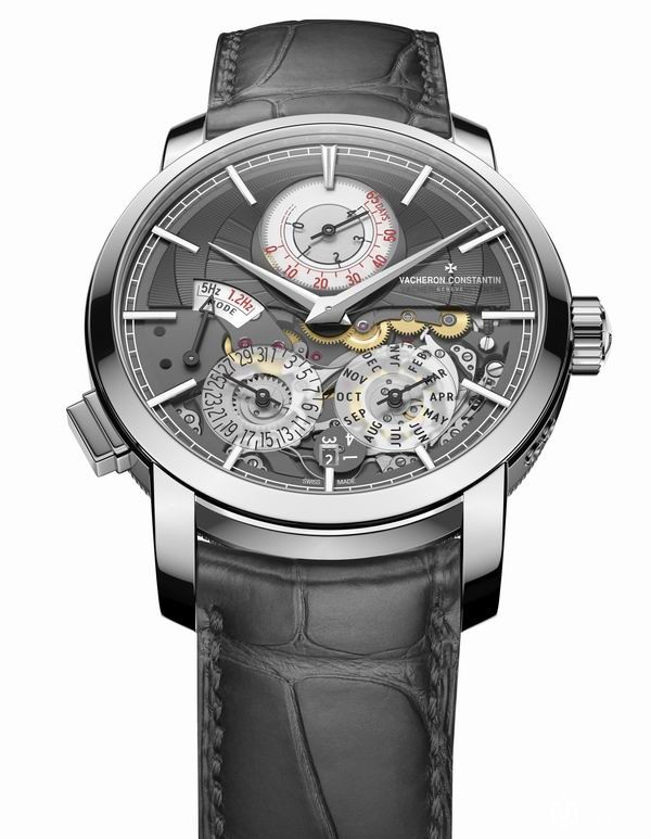 江诗丹顿Traditionnelle传袭系列双重芯率万年历,可以在5赫兹振频与1.2赫兹振频中随意切换。