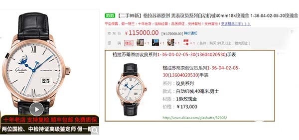 格拉苏蒂原创议员系列腕表官网价(右下角)和二手价格(中上方)