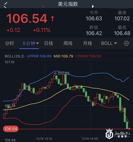 分析师指出,美元指数自高点大幅回落,这推动金价自日内低点上涨。美元指数目前位于106.55左右,亚市尾盘该指数曾突破107.00关口。