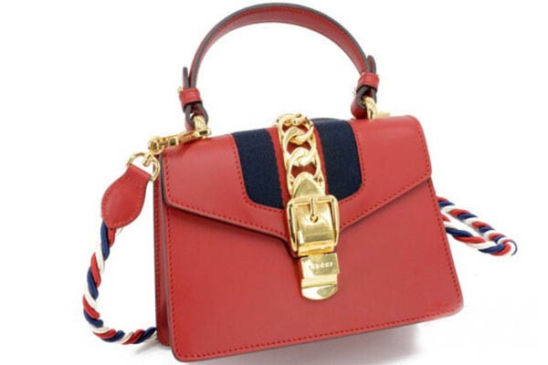 上图为古驰Sylvie系列红色牛皮包实拍