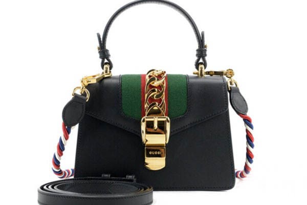 上图为古驰Sylvie系列黑色牛皮包实拍