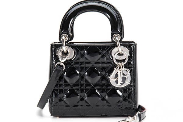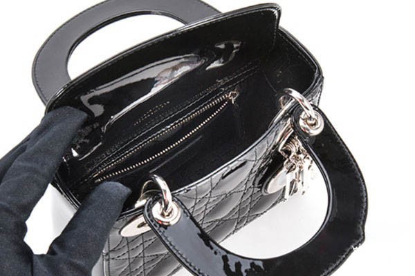 上图为迪奥黑色漆皮戴妃奢侈品包包正面实拍