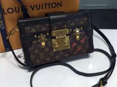 小巧的PETITE MALLE超有设计感 别具创意,早已成了时髦 个性的象征,据说PETITE MALLE设计灵感来自路易威登古董旅行箱,简直就是一个缩小版,可能很多人也没有亲眼目睹过路易威登古董旅行箱,不过看PETITE MALLE设计也可能感受得出浓浓的复古感,比如复古的古铜色五金,经典Monogram帆布,硬制的边框,小巧的PETITE MALLE还配有长肩带,可以手拿 单肩 斜挎多种方式搭配。
