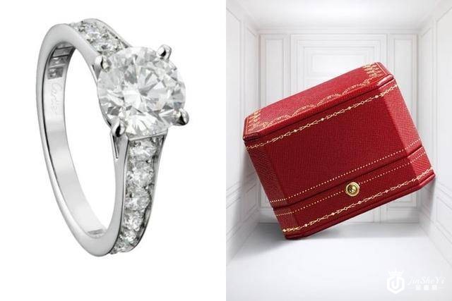 先让小编来介绍卡地亚的一款经典求婚必备 Cartier 戒指:Solitaire 1895 单钻戒指,顾名思义,这个钻戒系列诞生于 1895 年。4 爪镶座设计令中央的钻石有悬空感觉,更突显钻石闪耀生辉,直到今天这颗简约而传奇的单钻戒指,再加令人一见倾心的红色盒子,百年来见证了不少爱情故事。