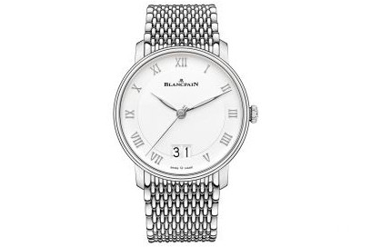 基本信息编号:6651-1127-MMB品牌:宝珀系列:经典系列机芯类型:自动机械性别:男士价格提供准确价格、价格:¥ 930002016-12欧元:美元:港元:HK$ 980002014-10注:以上为官方媒体公价(仅参考),请咨询当地专卖店,详情>>机芯机芯型号:1151机芯直径:27.40毫米机芯厚度:3.25毫米宝石数:28零件数:210动力储备:100小时外观表径:40.毫米表壳厚度:8.7毫米表壳材质:精钢表盘颜色:白色表盘形状:圆形表盘材质:表镜材质:蓝宝石水晶玻璃表冠材质:表带颜色:银色表带材质:精钢表扣类型:折叠扣表扣材质:背透:背透重量:防水深度:30米功能日期显示