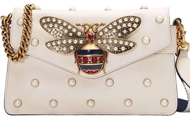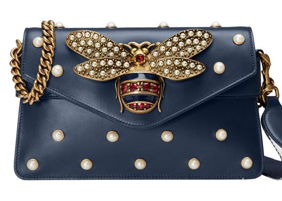 Gucci Broadway小蜜蜂手袋于2017早春推出,蜜蜂作为GUCCI品牌元素之一,几乎出现在Alessandro Michele每一季的作品当中。欧洲人对蜜蜂的喜爱由来已久,早在拿破仑时期蜜蜂就被视作皇权的象征,经常出现在皇家服装、皇室器具上。但是其实Broadway的系列并不仅仅有蜜蜂包,虎头包的设计也是蛮多的。虎头的设计我觉得就会更加中性一点,甜美的感觉少了不少。金属链条也更硬朗一些,多一条彩色背带也很更有搭配的空间,彩色背带和蝴蝶结也更加相得益彰。