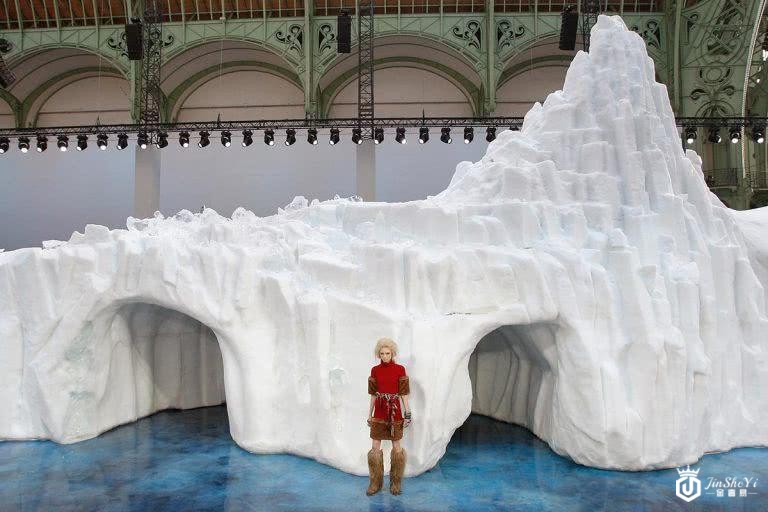 拉格斐的创举不仅限于设计时装,他还热衷于打造极具创新和话题性的秀场。他曾把香奈儿的秀场布置成旋转木马游乐场,香奈儿的各种经典手袋、鞋履和帽子代替了旋转的木马。他还曾把秀场造成超级市场、赌场、餐厅和艺术馆,2019春夏系列还把巴黎大皇宫变成了度假海滩,极为真实的海浪阵阵拍打在沙滩上,模特则光着脚、提着高跟鞋从观众面前走过。