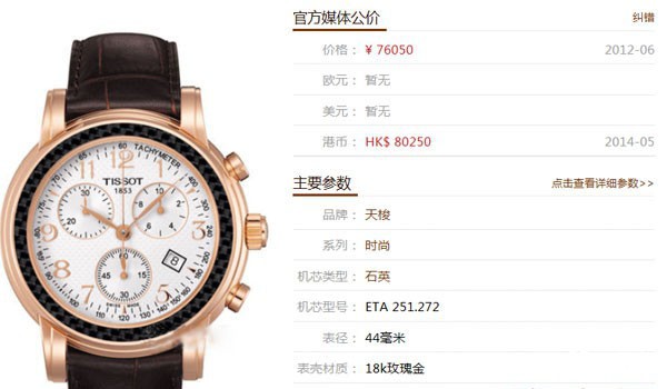 上图为天梭时尚系列T906.417.76.031.00手表市场公价