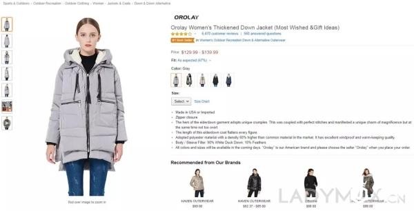 Orolay连续两年成为亚马逊女款羽绒服和大衣的销售冠军