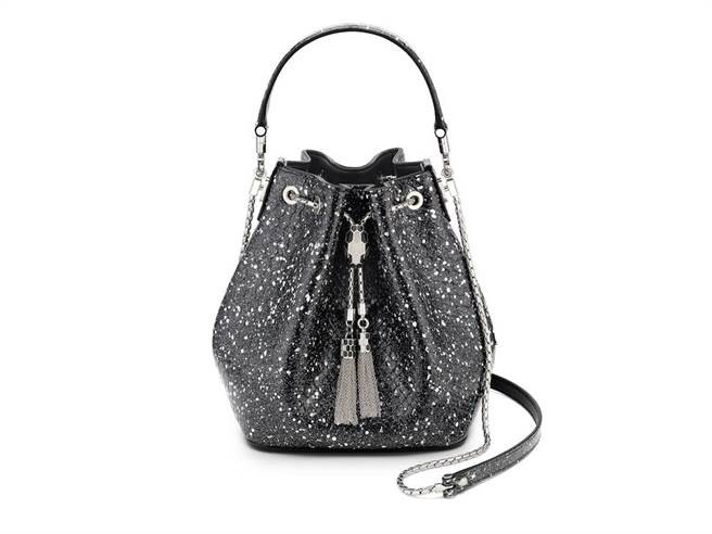 SERPENTI SWING黑白亮银星光蟒蛇皮水桶包。(品牌提供)