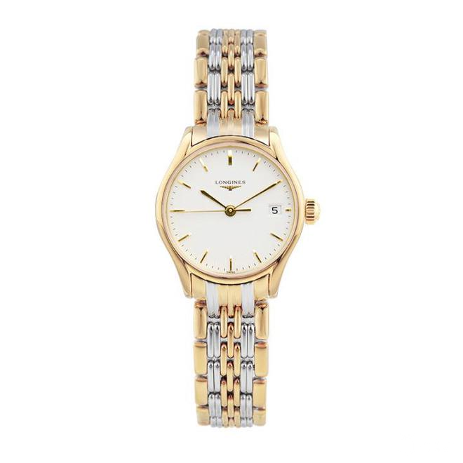 浪琴律雅系列L4.760.4.12.6腕表,这款腕表搭载Cal.L619自动机械机芯,精钢圆形表壳直径为35毫米,白色表盘上嵌有时标只是时间,并在三点钟位置开窗显示日期。腕表使用抗磨损蓝宝石水晶玻璃表镜,表带为精钢链式表带搭配折叠扣表扣。这款腕表为密底设计,防水深度30米。