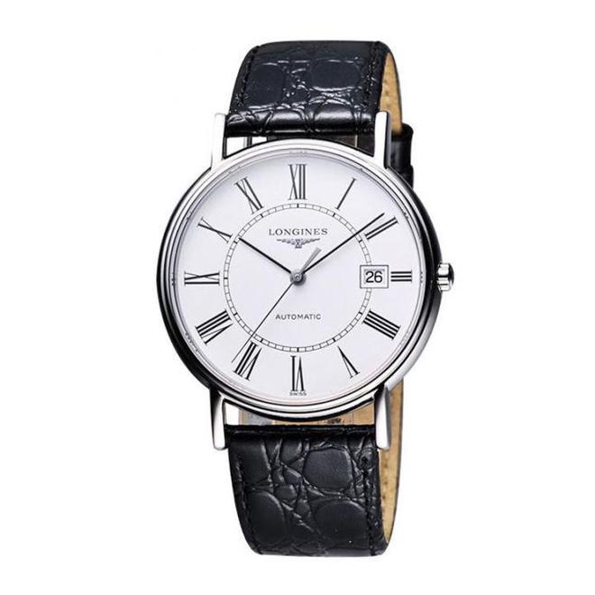 腕表点评:这款浪琴瑰丽系列L4.921.4.11.2腕表内部搭载自动机械机芯,表径38.5毫米,白色表盘上使用罗马数字作为时标,三点钟位置有日期显示功能。腕表使用抗磨损蓝宝石水晶玻璃表镜,精钢材质的圆形表盘和黑色鳄鱼皮表带搭配,腕表简约而庄重。这款腕表为密底设计,防水深度30米。