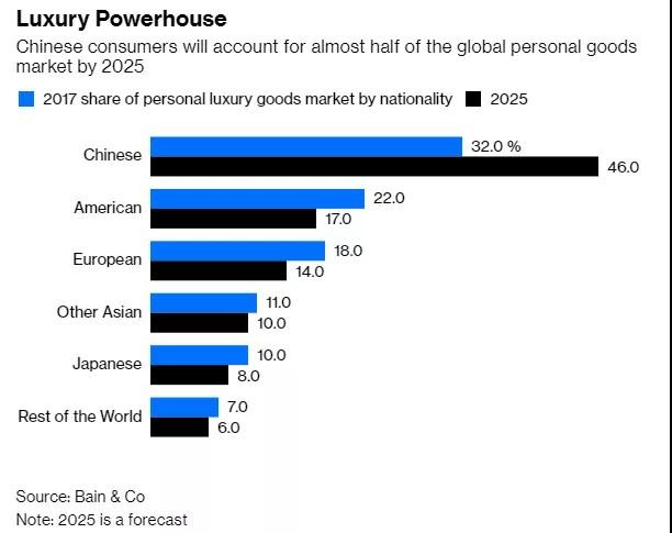 报告预计到2025年中国消费者将贡献全球奢侈品行业近50%的销售额