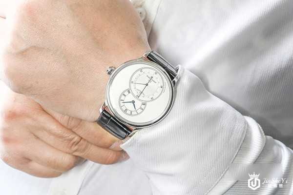 有很多人买手表,就图一个艺术价值高,观赏性很强,虽说这种手表往往缺货,要到回收市场上去购买,但他们也乐于接受,因为这种艺术价值是独一无二的。所以说如果拥有一块雅克德罗大秒针系列J007030242腕表这样的充满艺术感的手表,的确很值得拿去回收。为什么它被称作“大秒针”?我们可以看到,在蛋白石打造成的银白色的表盘上,小时和分钟的表盘与秒盘互相嵌套,变成一个阿拉伯数字“8”,而且大圈是秒盘,小圈才是时分盘,因此名为“大秒针”,可见雅克德罗手表独特的艺术品位。在细节上,我们也能发掘出满满的艺术感,时间标识又是罗马数字,在秒盘内侧还有日期显示,多个功能形成微妙的平衡,显得井然有序。在评估手表回收价格的时候,看重的不仅仅是它的外观,同时也注重功能性。复杂功能的手表能满足更多人的需求,因此这个优势往往能让雅克德罗手表在回收市场上更加抢手,并且卖出更高的价格。