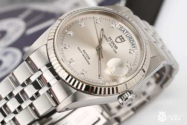我们来看看这款帝舵海洋王子型系列76214-62480 10di腕表是多少钱,它的公价为31500元,36mm的表径对于手腕较细的男士来说非常的友好,通体精钢的表壳和表链给人一种简洁干练的感觉,而且防损耐磨性能也不错。日历窗口沿袭了劳力士的气泡窗设计,能更方便地读取信息。表盘上镶嵌十颗美钻,作为时标为这款帝舵手表增添了一大亮眼,简约而不简单。针对这个款式的人气还算不错的,如果是95新成色的话那么回收价格可以到15800元,差不多是公价的5折。