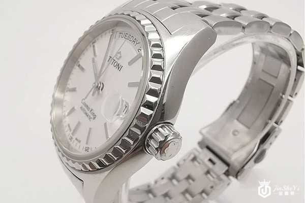 那么小编就给大家讲讲上面提到的主客观因素我们该如何看待。手表的款式和成色两大客观因素,用这款梅花男士系列787 S-310腕表来说,它是在售款式中比较热门的一款,围绕着38.5mm的不锈钢表壳,是优雅而唯美的波纹型表圈。白色的盘面上,镶嵌着线条状的时标与指针,并且在3点和12点位置设计了日期和星期标识功能。搭载的ETA 2834-2自动机械机芯,有着38个小时的动力,防水深度为100米。在回收价目表上,这款95新的梅花手表,回收价格在5980元左右,大约是原价的6.4折。我们平时保养好梅花手表的成色,价格自然还会上升。