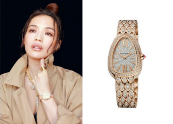 舒淇佩戴宝格丽Serpenti Seduttori鎏光蛇影腕表