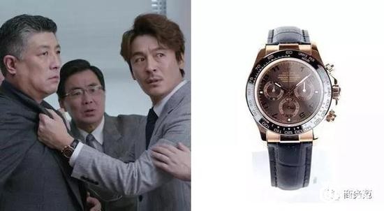 非常自恋的柳青,选择腕表也要既显实力又带点雅致,所以就戴了一款鳄鱼皮表带的劳力士迪通拿,棕色表盘非常独特。