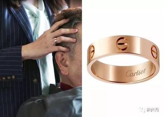 除此之外,明玉也有一些女精英“标配”的珠宝,比如Cartier Love系列戒指,风格中性,辨识度高,玫瑰金色温柔又亮眼↓
