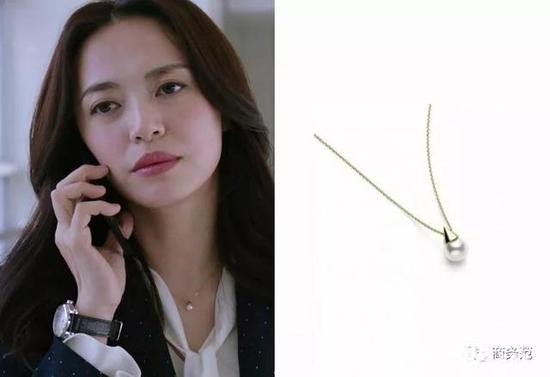 前面提到过,珍珠温润皓洁,气质柔美端庄,明玉选择单颗款式的珍珠吊坠,整体看起来温柔了不少,这款来自TASAKI,Akoya珍珠亮度绝佳再配上一点点设计感,非常适合日常上班佩戴。
