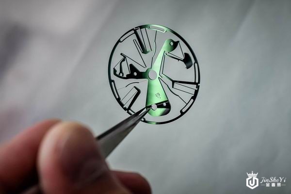 机芯的精准度,与擒纵系统的振频有直接的关系,振动频率越快,能量分割得更小,指针运作也更精准。传统机械机芯依靠游丝伸缩切分能量,振频通常是2.5赫兹,高一点到4赫兹,也就是每小时伸缩2.88万次。5赫兹已经是大部分机械机芯的极限,如果振频过高,纯粹由机械构成的机芯可不一定能够负担得起,说不定转着转着就崩了,这是游丝结构带来的“物理天花板”。