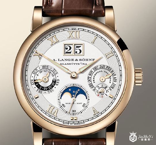 LANGEMATIK PERPETUAL HONEYGOLD,其独特蜂蜜金表壳上的抛光技艺引人注目。