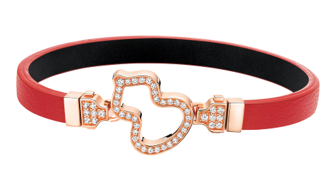Wulu18K玫瑰金钻石链扣和可替换红色牛皮手链