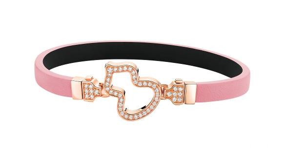 Wulu18K玫瑰金钻石链扣和可替换粉色牛皮手链