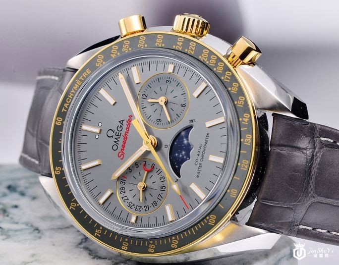 腕表的精确月相显示位于6时位置,月相显示运转十年才需调校一次。欧米茄通过独特的微结构加工工艺,在金属晶体圆盘上呈现高清晰度月球影像。