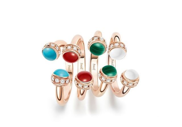 伯爵历来擅长对硬质宝石的应用,色彩的加让Possesion系列成为日常搭配的时尚单品。不同宝石的色调与旋转圆环处的美钻形成对比。