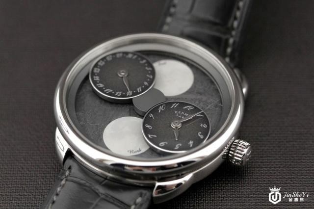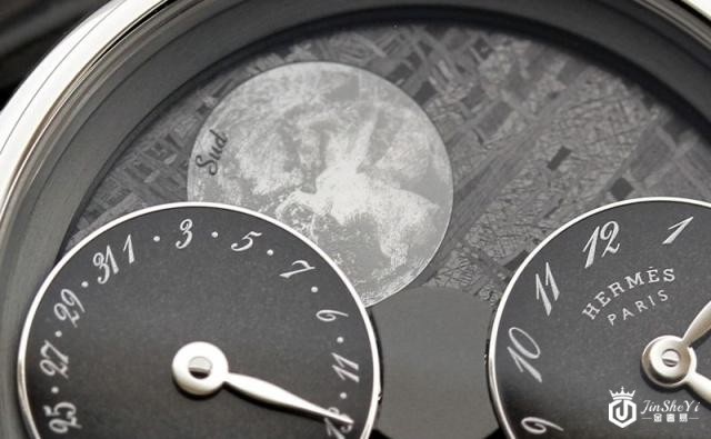 当初爱马仕在规划这款复杂功能腕表的时候,就找上了独立制表师Jean-Franois Mojon。这为闻名于业界的人物(2010年GPHG日内瓦钟表大赏最佳制表师)曾经参与Harry Winston的Opus计划,也为Cyrus、MB&F等独立品牌创作过,不只充满想象力,更具备化想象为现实的能力。他在爱马仕既有的H1837机芯上安装了一个时、分及日期双圆盘模块,透过中央齿轮将发条动力传输到上层,驱动时、分、日期指针,并让整个模块在午夜12点瞬间跳动一格。厉害的是当双圆盘跳动的时候,不管是时、分还是日期盘,都会透过机芯外围的环状齿轮跟着转动;因此时标「12」以及日期「31」永远都会在副表盘的12点钟位置。