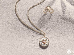 Empreinte 珠宝系列,圆形铆钉以别具一格的内凹形态嵌入每一件珠宝之中,黄金与白金构建起整个系列。叠加搭配,柔和不张扬,金属色泽与肌肤光泽相映成趣。