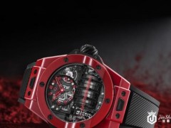 表壳与表带由品牌代表性的黑色抛光高科技陶瓷打造,表壳仅厚7.8毫米,在黑色表盘的半圆形镂空开窗下,清晰看到镶有21颗深红色宝石的黑色机芯,超薄的外形配合轻盈的陶瓷材质使腕表独具美感。