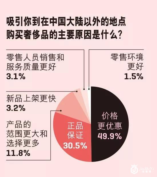 对于选择在中国大陆以外地区购买奢侈品的消费者而言,“价格更优惠”(49.9%)以及“正品保证”(30.5%)依然是他们的最主要理由。