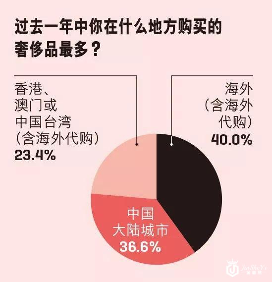《财富》(中文版)调查发现,过去一年中受访者购买奢侈品最多的地方依次为:海外(40%)、中国大陆城市(36.6%)、港澳台地区(23.4%)。虽然从统计数据上看,选择海外购买奢侈品的中国消费者依然占据多数。