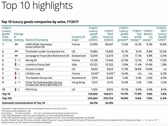 德勤2018奢侈品报告中的TOP10