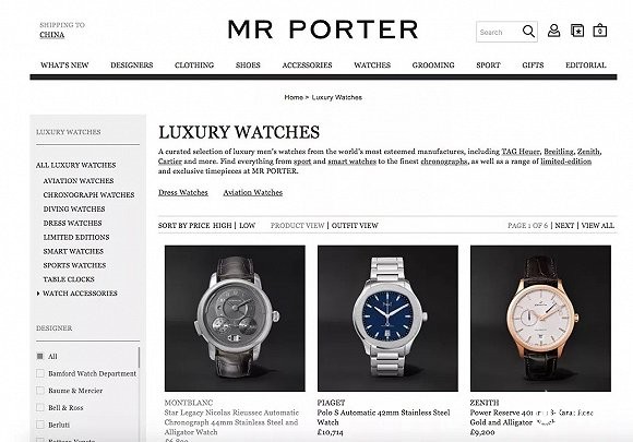 Mr Porter电商平台已经获得众多奢侈品腕表官方授权